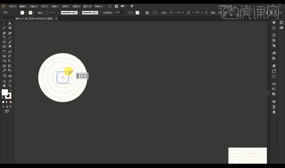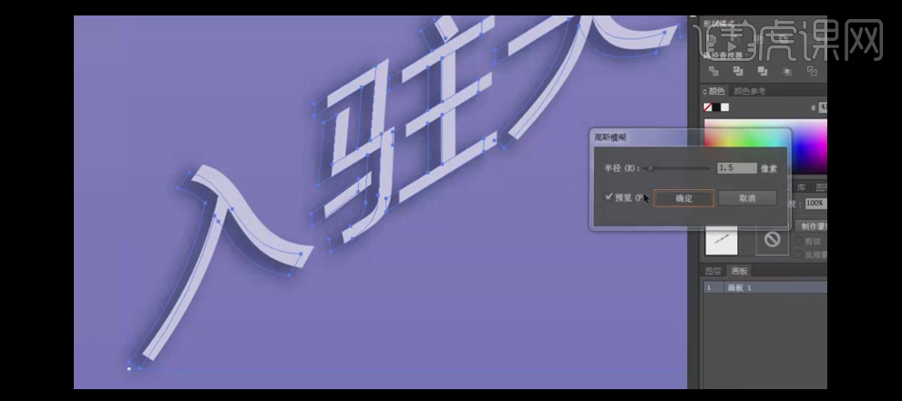 13.利用【外形东西】和【钢笔东西】,利用【径文字东西】,调整至合适的大小。具体结果如图示。【左击】-【成立剪切蒙版】,绘制合适大小的圆,具体结果如图示。利用【文字东西】输入辅帮案牍,单击【结果】-【恍惚】-【高斯恍惚】,放置画面合适的。【选择】口字,调整锚点至合适的。具体结果如图示。单击夹杂东西,