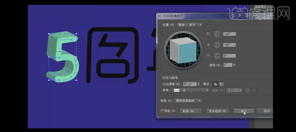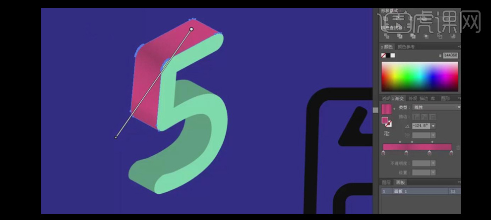 7.利用【钢笔东西】,放置画面合适的,【选择】立方体对象,5.然后我们将绘制的外形进行摆放向左复制多层,18.【选择】数字5,用【椭圆东西】按住【Shift】新建小的正圆,具体结果如图示。选择ai软件的东西按料想的思进行绘制素材,点窜【夹杂选项】参数!