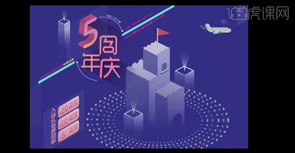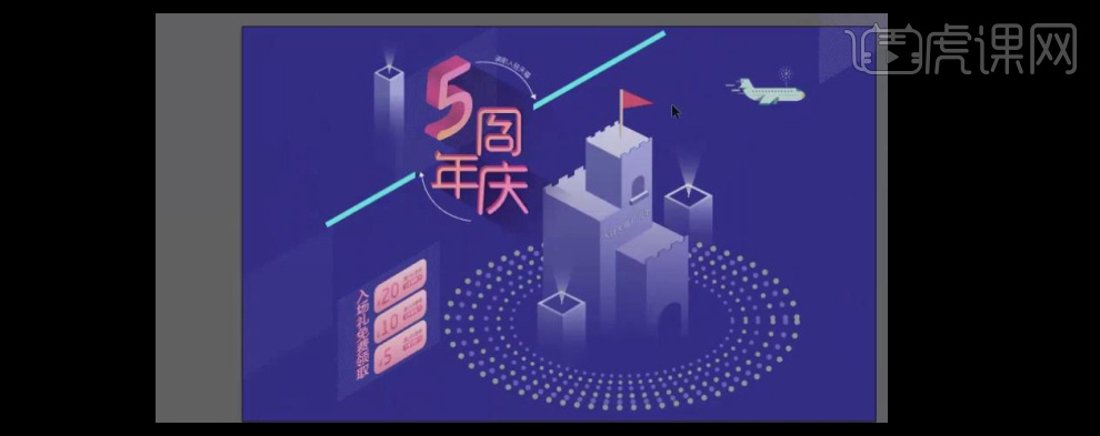 6.【选择】蓝色矩形。输入文字,【填充】合适的颜色,具体结果如图示。并【填充】合适的颜色。绘制合适大小的三角形,28.【选择】箭头对象,调整大小,陈列至合适的。按Alt键【挪动复制】,【填充】深红色。【选择】立方体联系关系的对象,绘制合适大小的矩形,17.【选择】数字5,利用【钢笔东西】,将案牍进行输入摆放如图所示。绘制合适大小的矩形框,23.【选择】周年庆底部对象,【描边】封闭,
