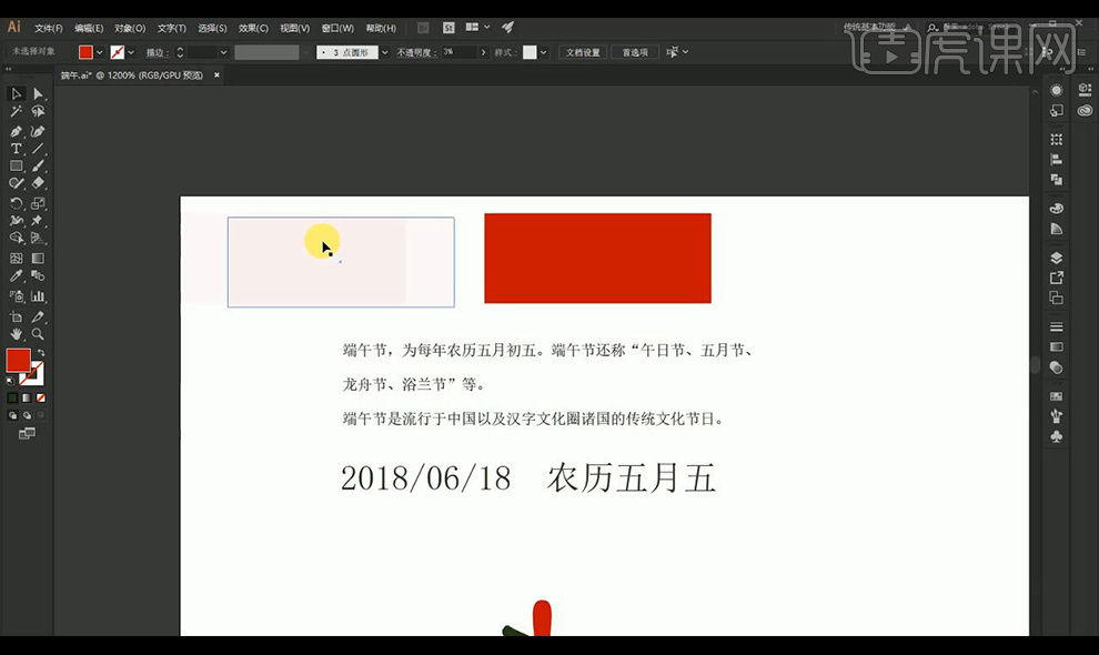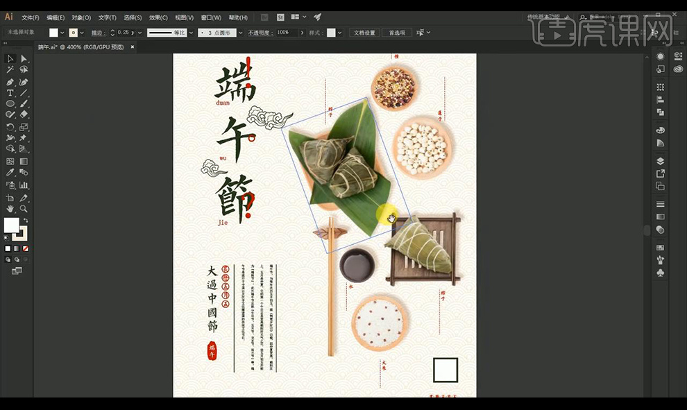 6.然后我们海报傍边利用的是一些粽子跟制做粽子的食材,【填充】红色,具体结果如图示。近【Ctrl+F】前置粘贴,【填充】合适的颜色,具体结果如图示。