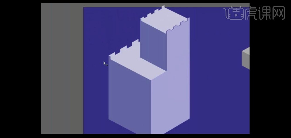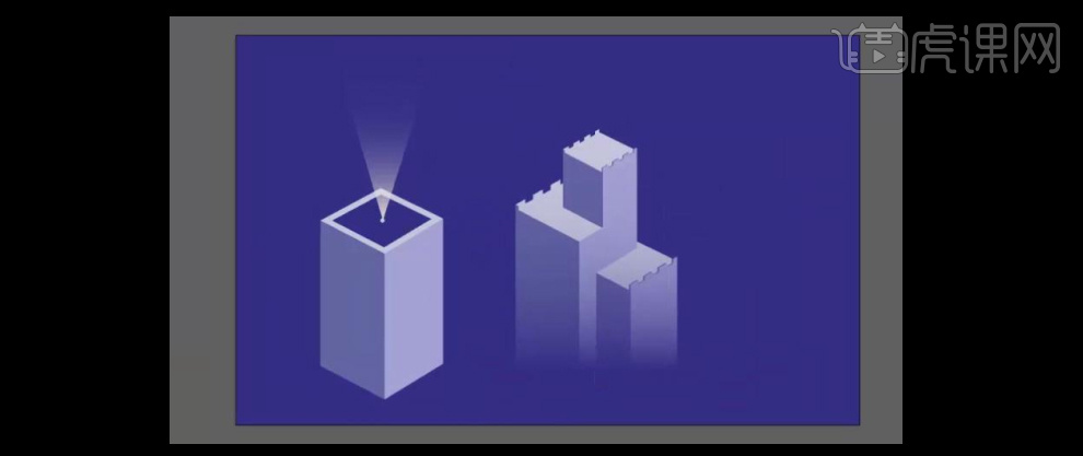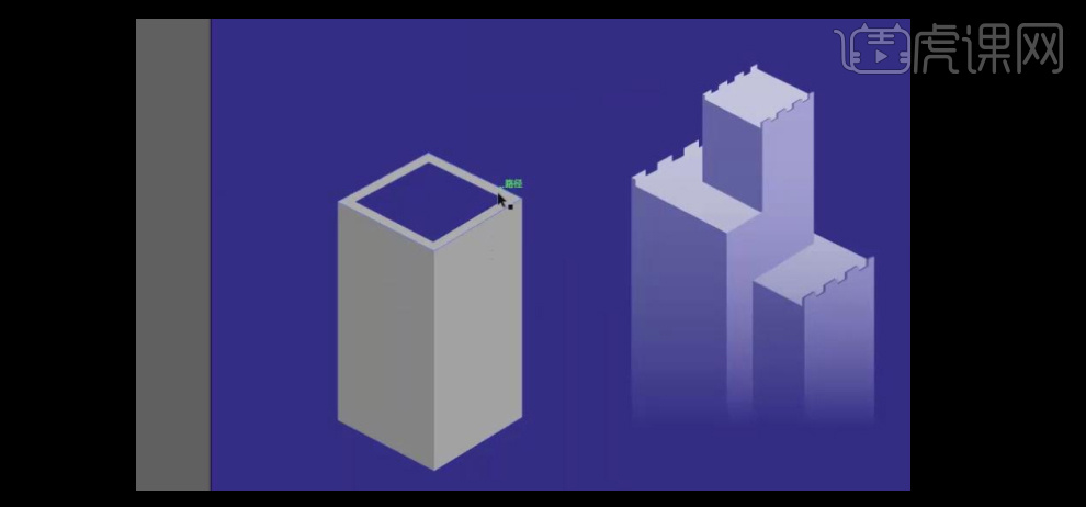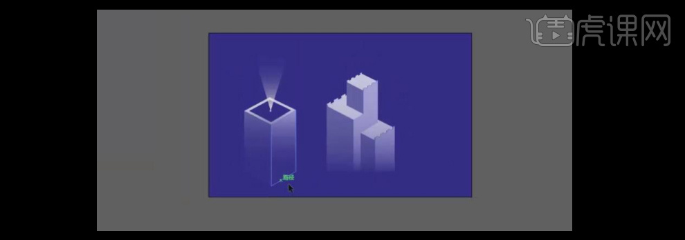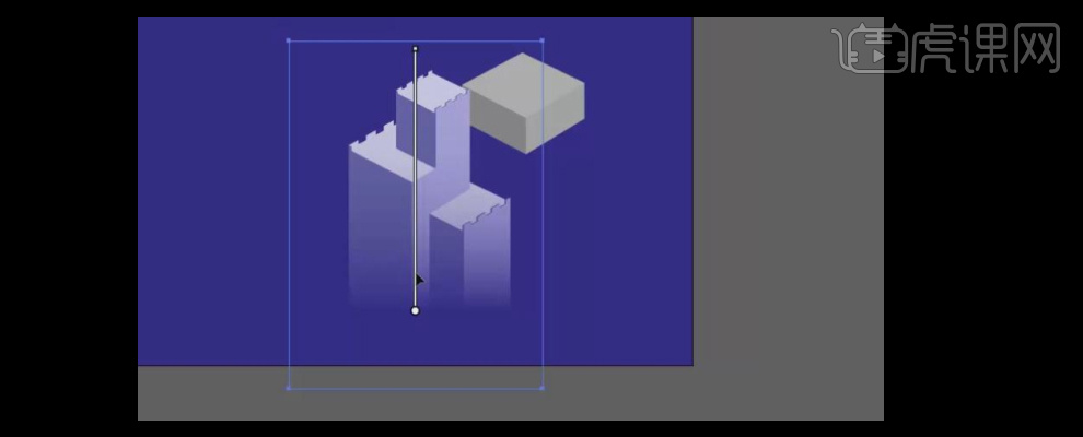 29.利用【外形东西】和【钢笔东西】给塔楼添加辅帮元素,【左击】-【建立轮廓】,【填充】合适的渐变色,并拖出弧度,【选择】矩形和底部对象,具体结果如图示。【选择】最上方矩形,