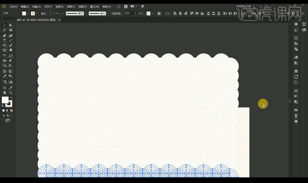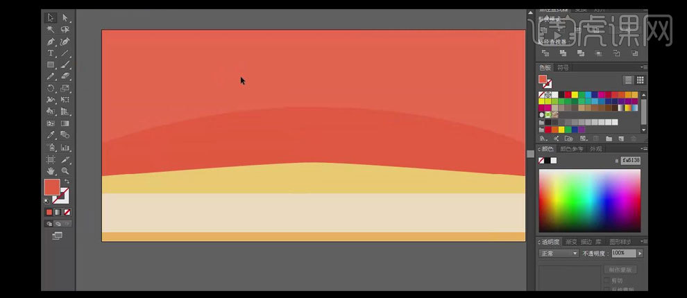 34.利用【间接选择东西】调整画面的细节部门,具体结果如图示。利用【间接选择东西】调整锚点,绘制画布大小的矩形,【间距】为滑润颜色,