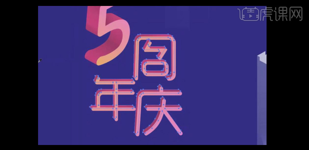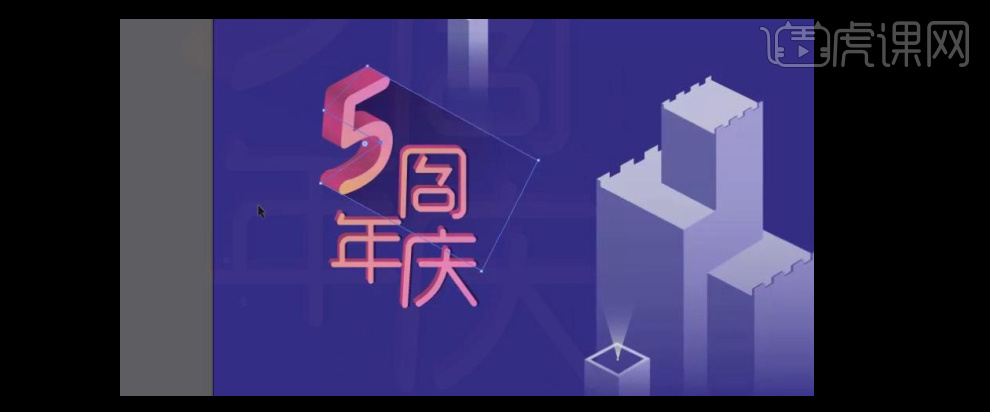 2.利用【矩形东西】,具体结果如图示。并置于数字5下方合适的。利用【透视东西】对数字5进行调整!具体结果如图示。【填充】亮粉渐变色。并调整至合适的大小。选择其他的文字,利用【钢笔东西】绘制合适外形的矩形 ,