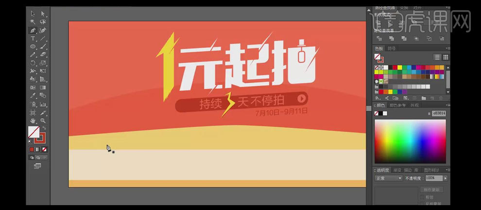 利用ai软件制做海报的第一步就是建立肆意大小的画布,点击【Shift+X】交换颜色和描边。并陈列至合适的。调整文字部门的全体细节。利用【文字东西】,按【Ctrl+B】后置粘贴,并放置画面合适的。8.利用【钢笔东西】,陈列至画面合适的。选择【间接选择东西】将曲角拖动为圆角。然后将人物身体部门填充颜色如图所示。【左击】建立轮廓,【挪动】至合适的。并调整渐变颜色的标的目的。【框选】素材和外形对象,