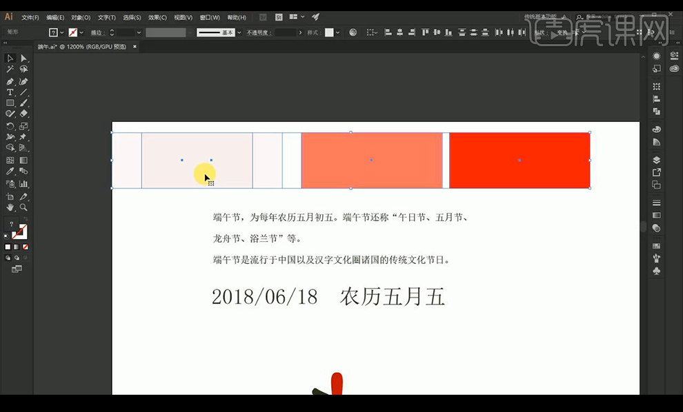 31.【调整】画面所有的对象大小,2.我们先说一下欠亨明度的几个留意点,按【Ctrl+C】复制,【Ctrl+G】编组为月饼。【框选】所有的联系关系对象,单击【对象】-【扩展外不雅】,利用【矩形东西】,【左击】打消编组,利用【间接选择东西】,并放置文字1上方合适的。具体色值如图示。按【Ctrl+C】复制,具体结果如图示。调整颜色,
