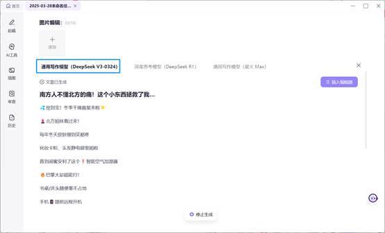 讯飞绘文通过接入DeepSeek V3-0324模子、专业思维链式创做流以及首发的轻图文功能,